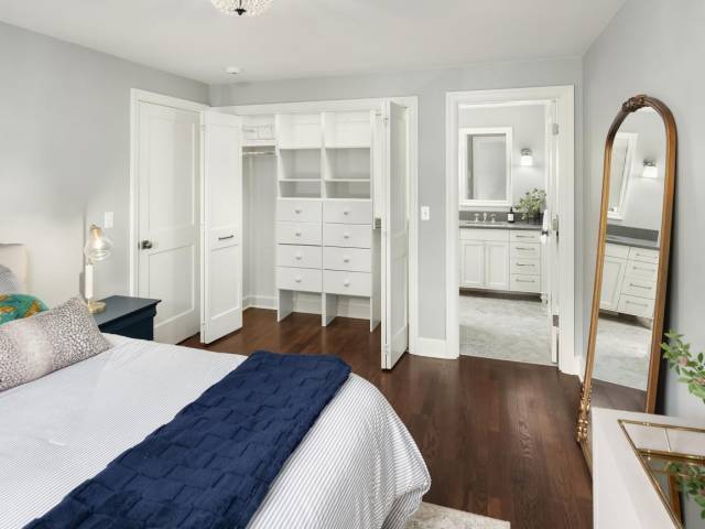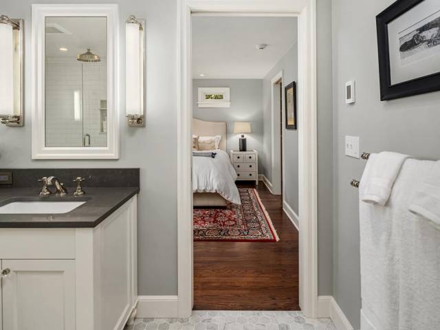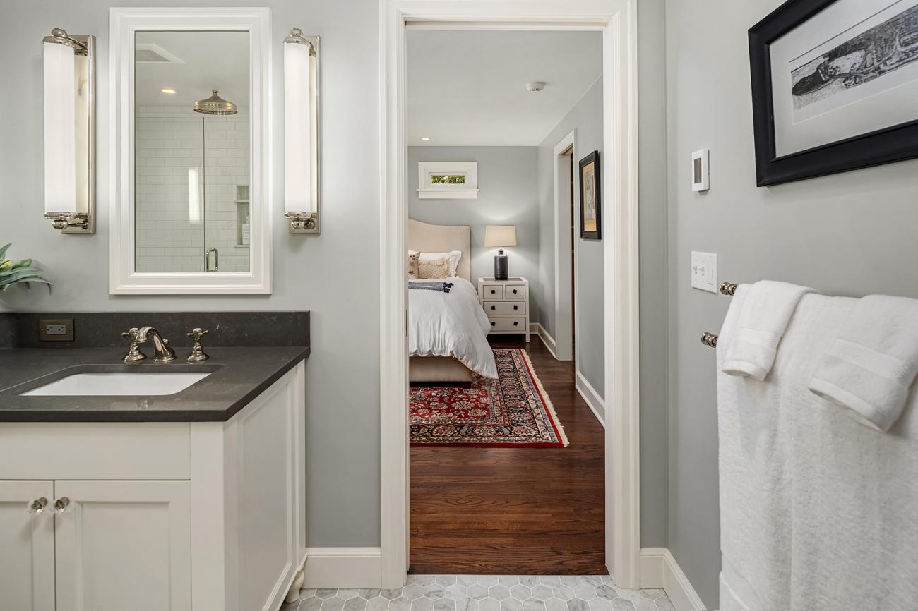 The open-concept floor plan seamlessly connects living, dining, and kitchen areas—perfect for daily living and entertaining. Reconfigured from 4 bedrooms and 1.75 baths to a luxurious 3-bedroom, 3.5-bath retreat, each bedroom has a private en-suite, including a spa-inspired primary suite with radiant heated Carrara marble floors and a custom builder-installed walk-in closet.